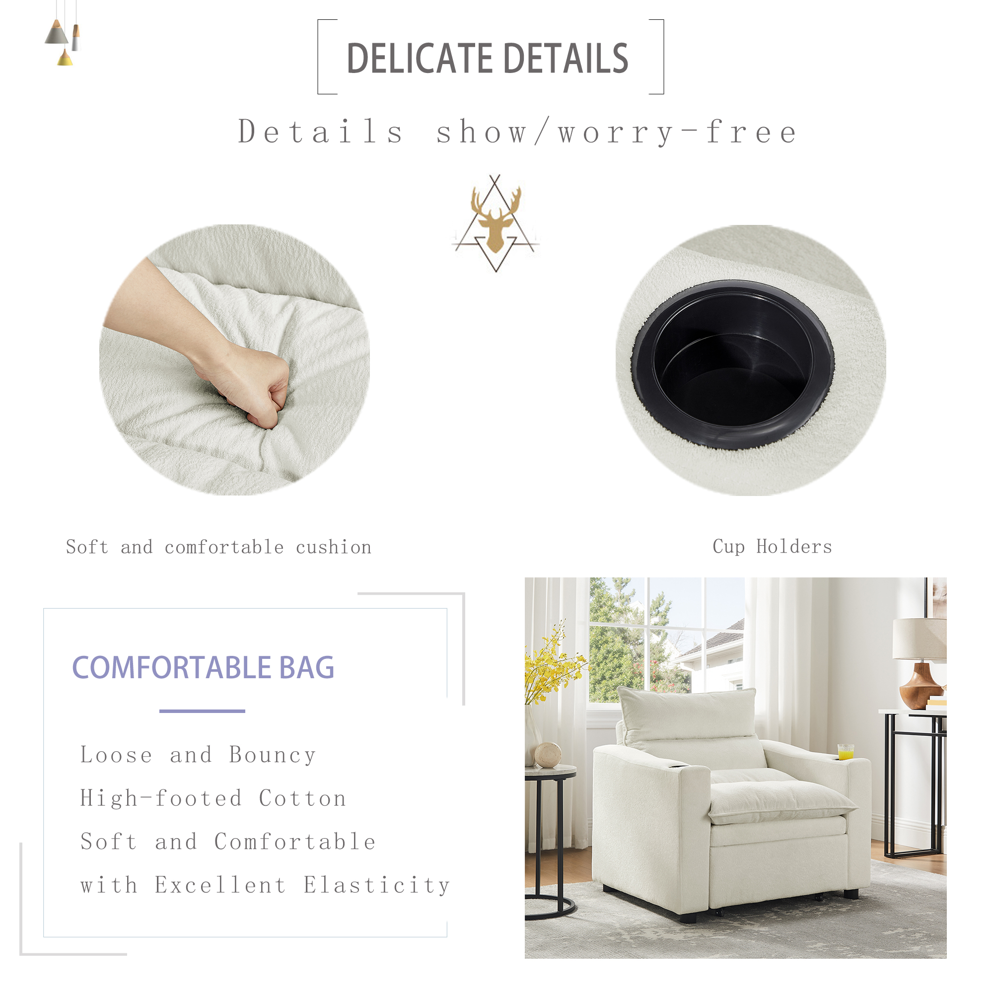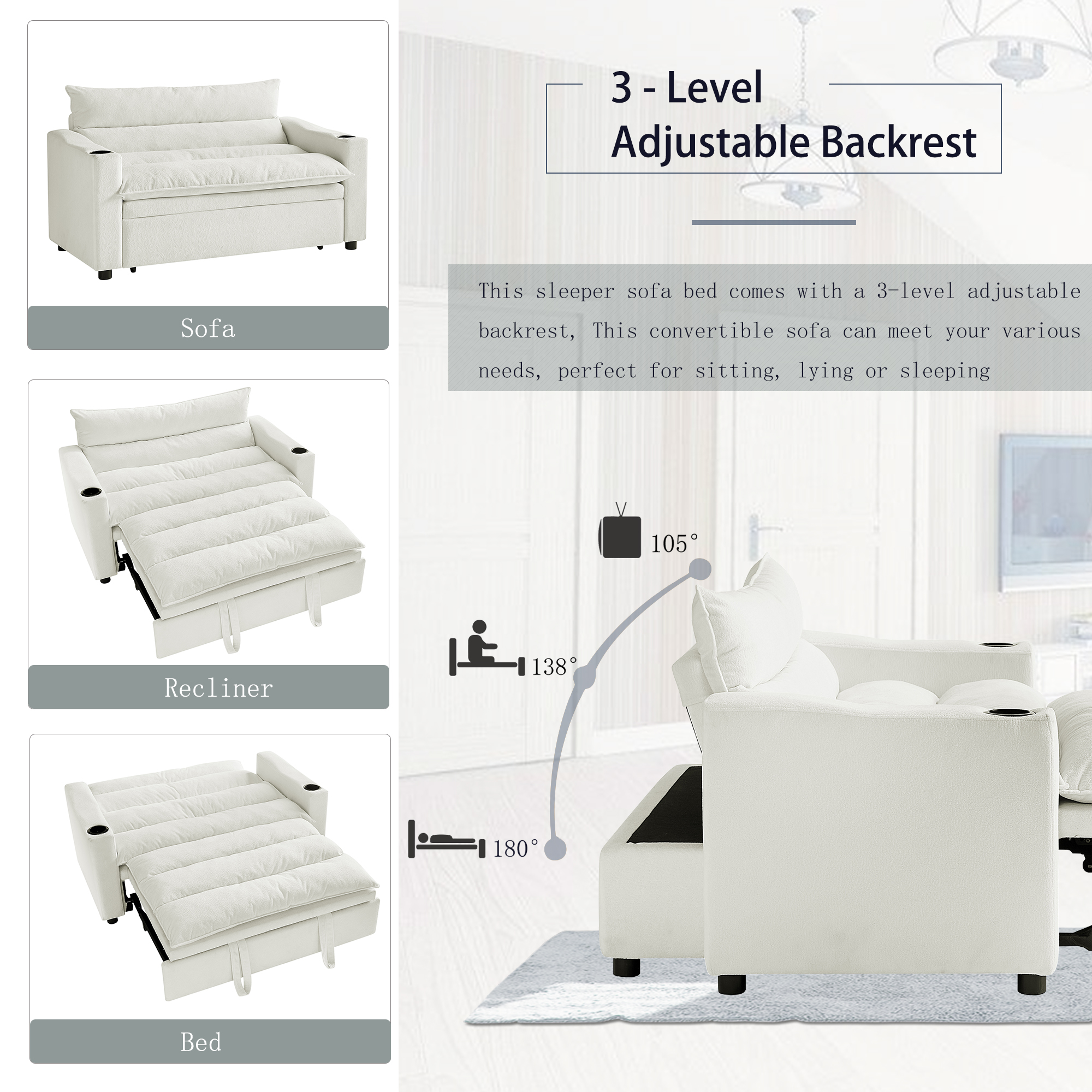 3-in-1 Convertible Design: Easily transforms into an armchair, recliner, or guest bed, offering maximum flexibility in one compact piece.
