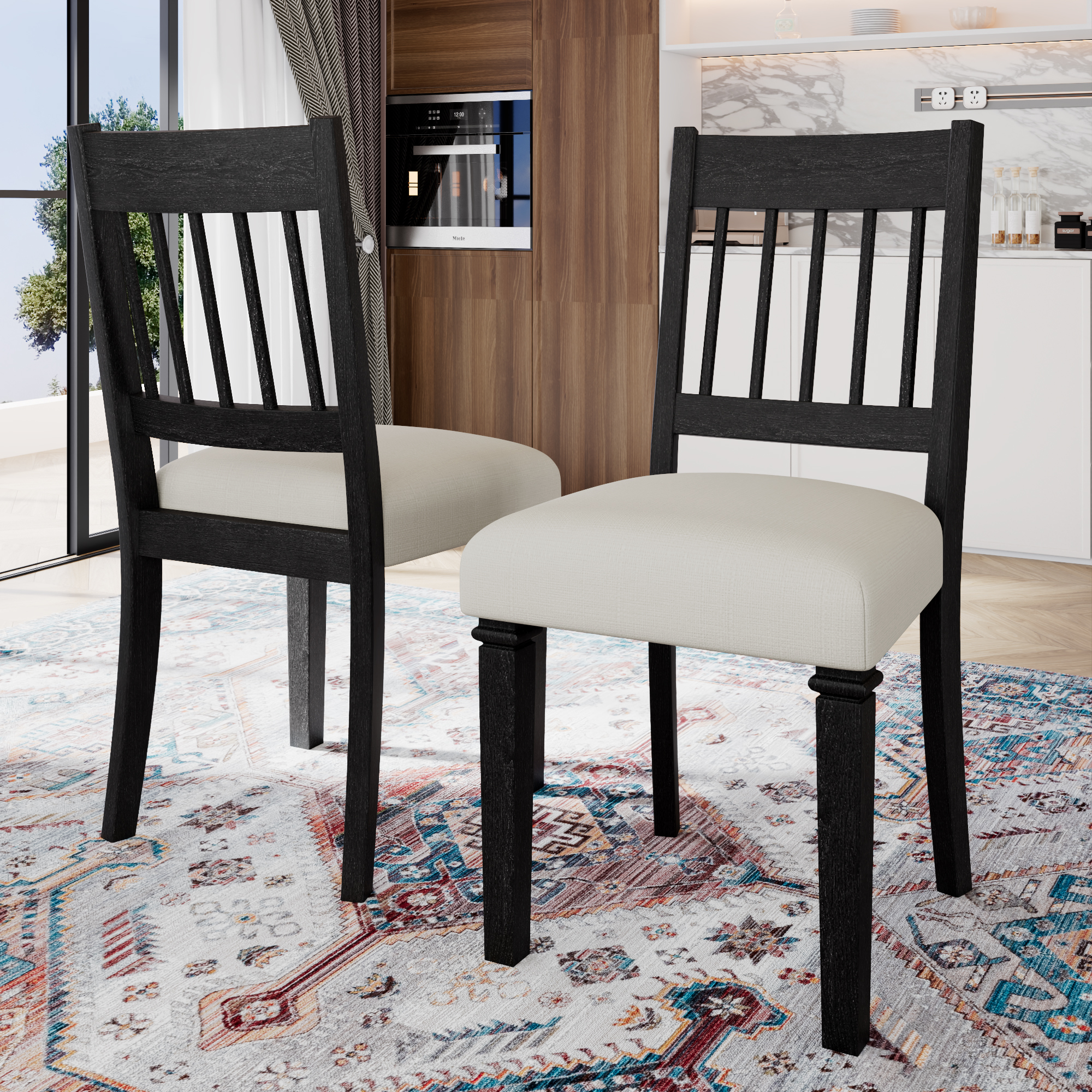The exquisite carved patterns on the solid rubberwood legs add a touch of sophistication and break away from monotony, elevating the look of your dining space.