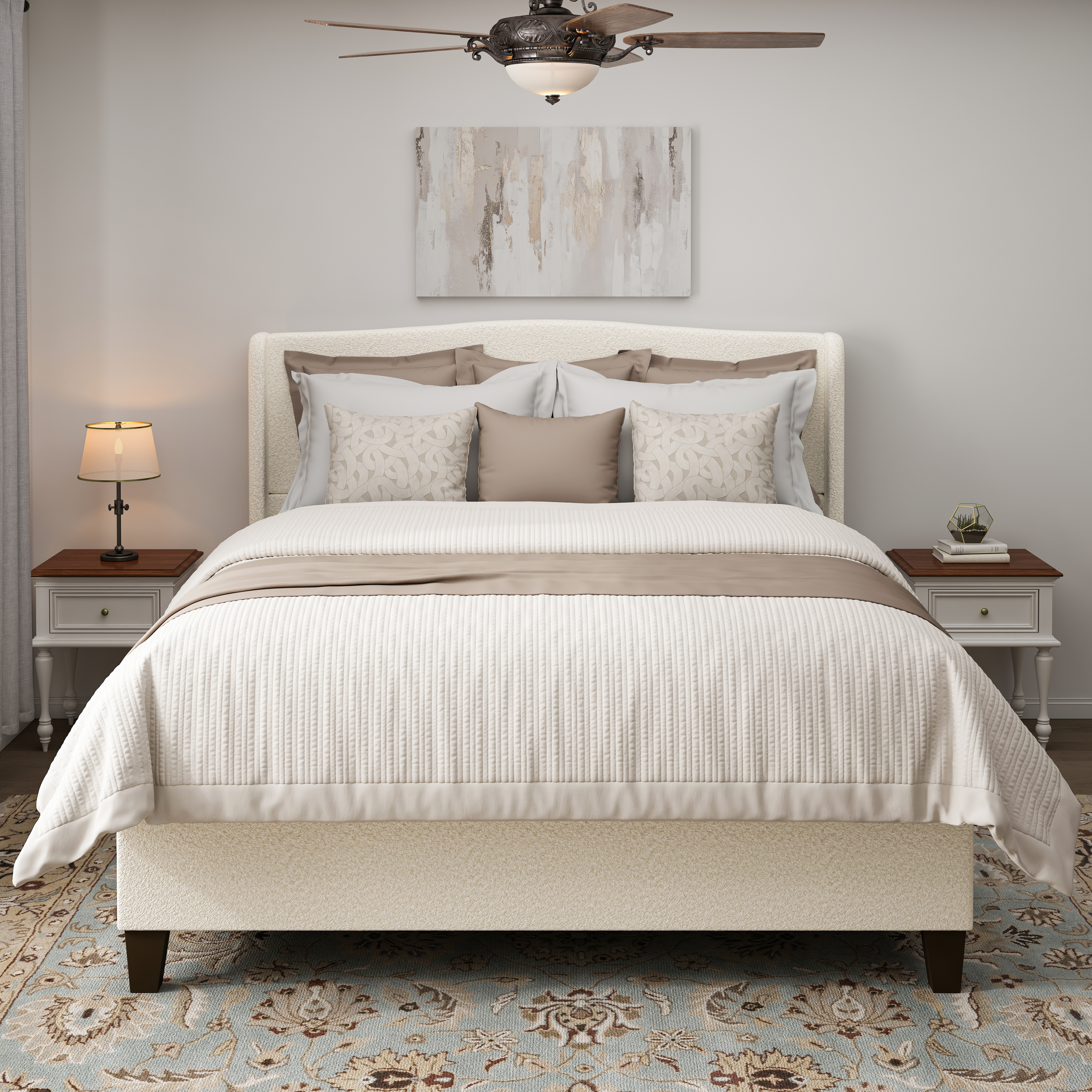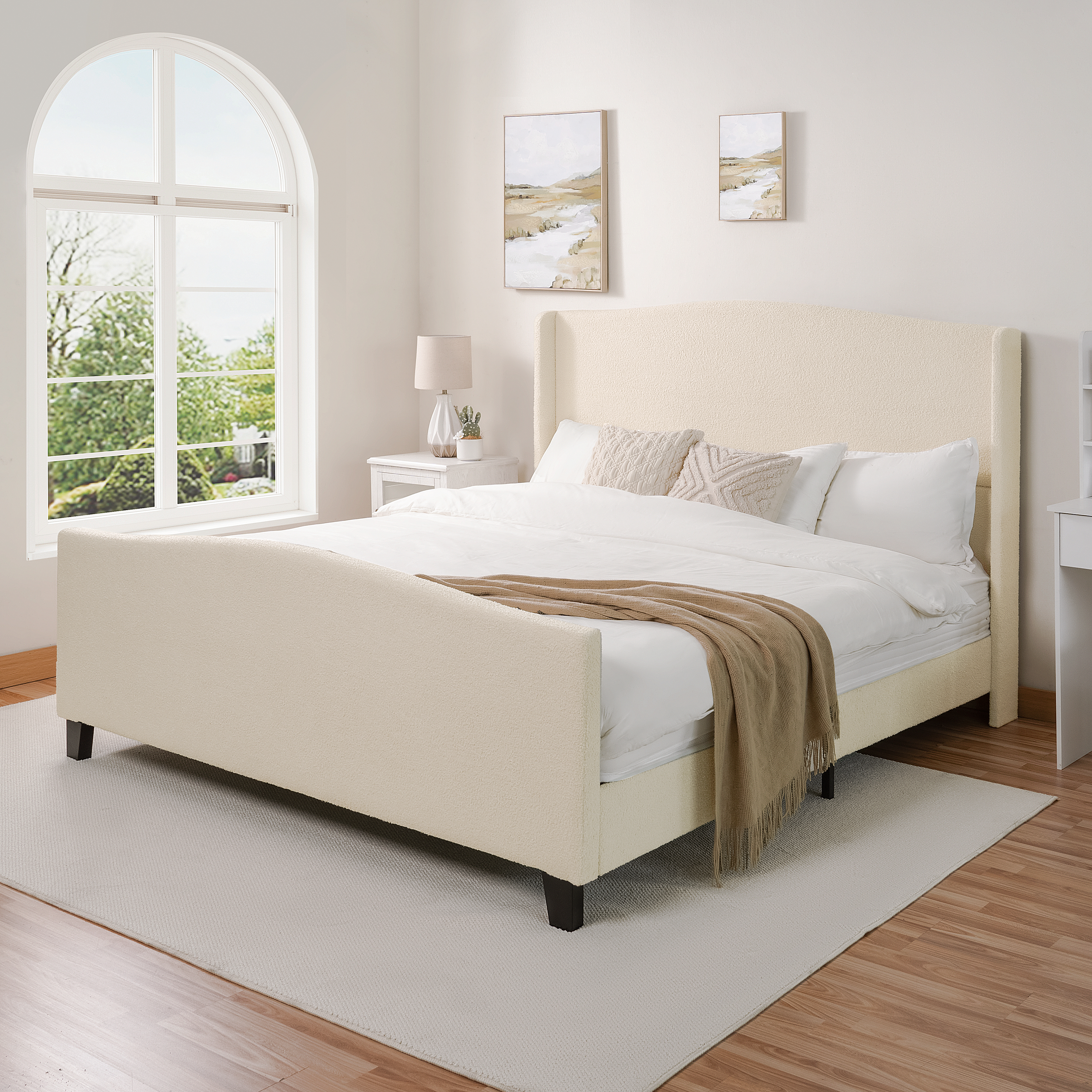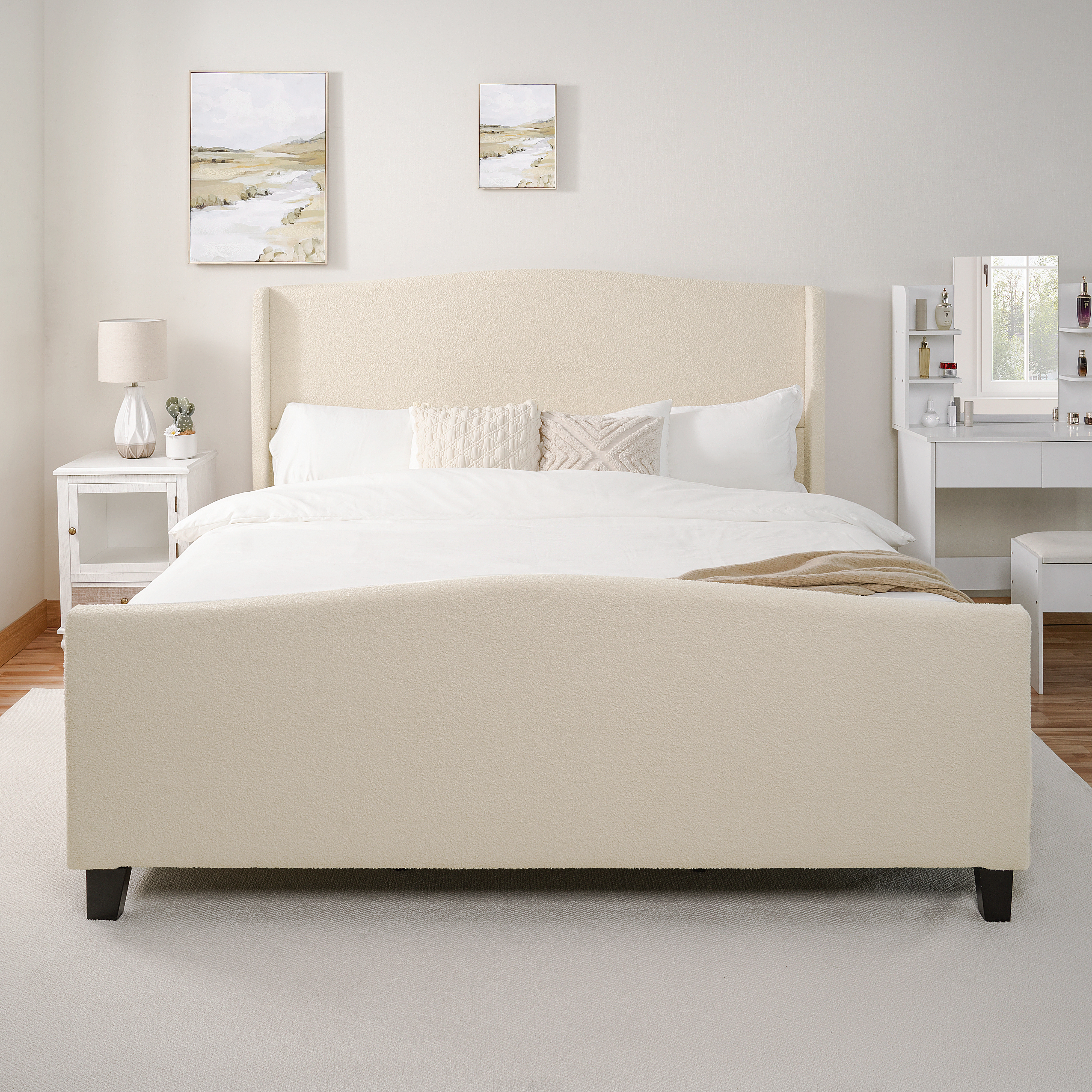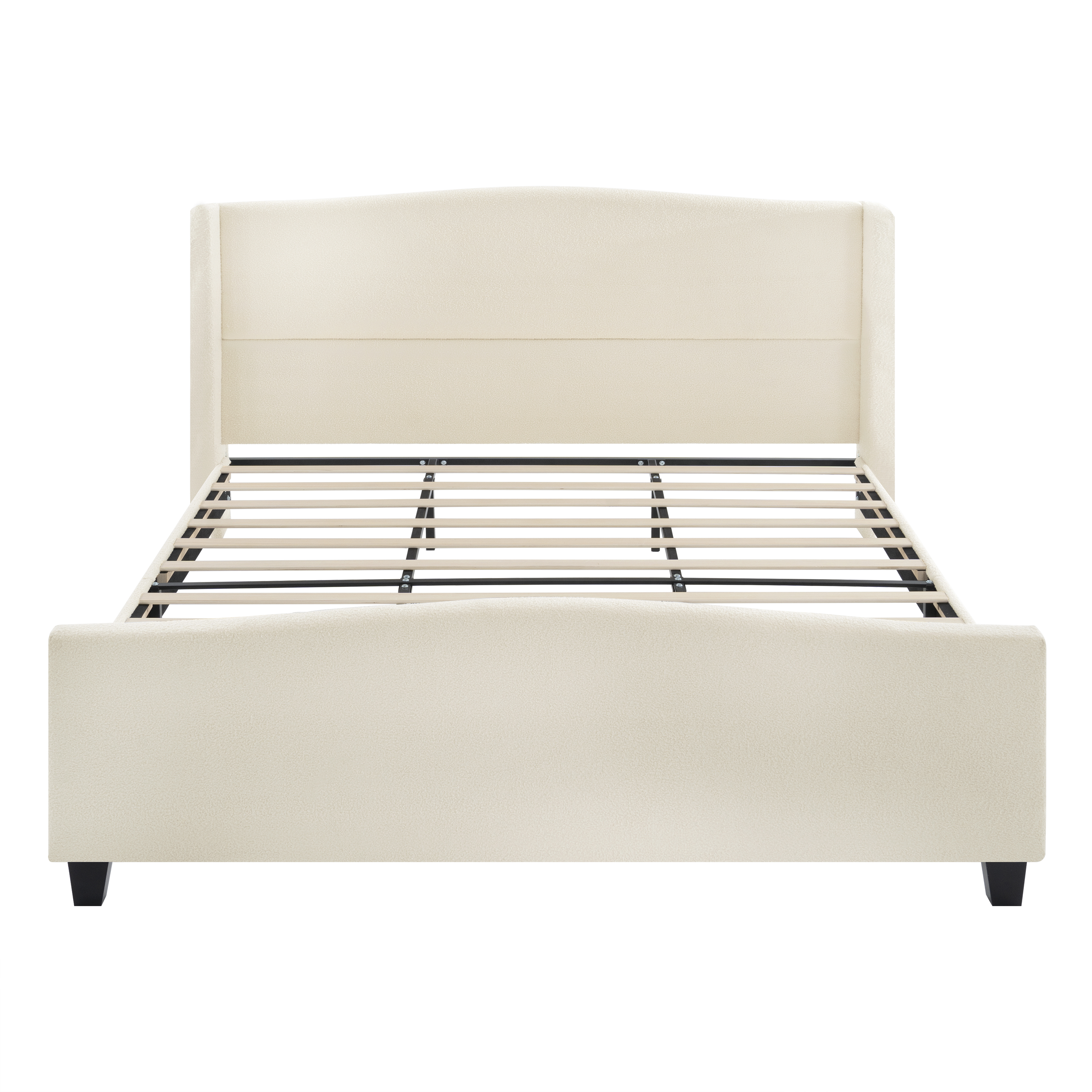 Upholstered Platform Bed Queen Size Storage Velvet Bed with Wingback Headboard and 1 Big Drawer This beautiful upholstered bed features two semi-circular storage…