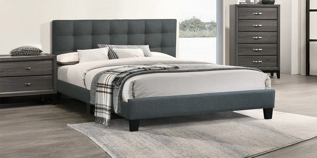 Tufted Headboard: Square tufting adds a contemporary touch and refined elegance to your bedroom.